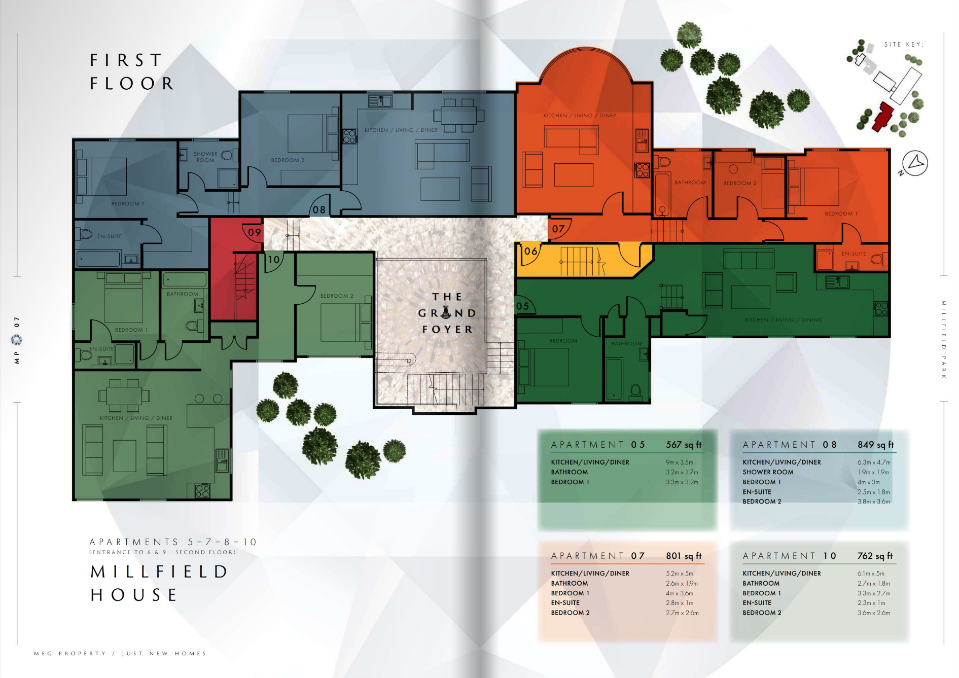 - All ground floor apartments in Millfield View have gardens, first and second floor apartments have large balconies, giving every apartment private outdoor space.
