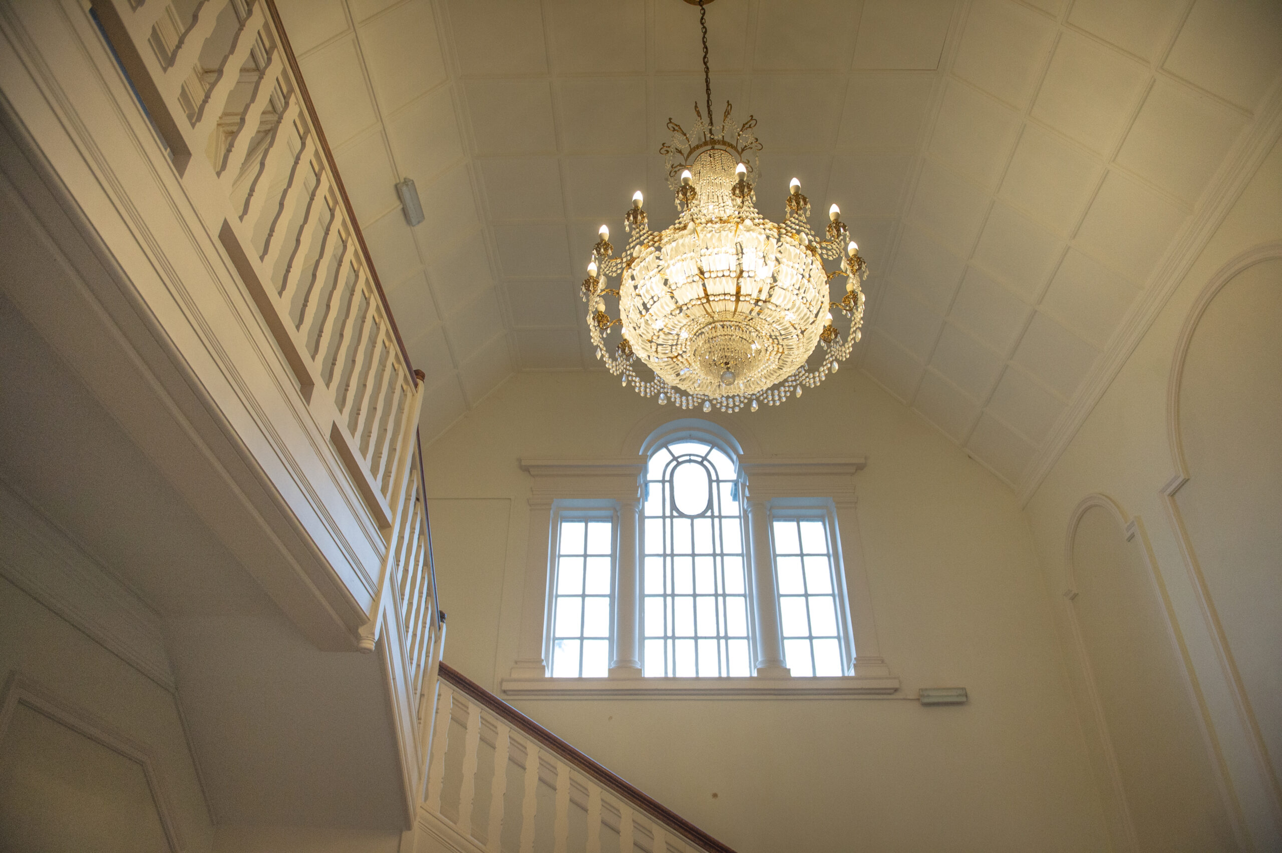 We are preserving the beautiful 6 foot Austrian Strass Crystal Chandelier which has pride of place in the entrance area. Also the bell used originally to call the staff to the house. A stone carved sundial at the side entrance which lead to the ornamental pond and rose garden. The gable at the front features garlands of fruit and flowers on either side of a carved greek goddess. This is all currently undergoing professional stone cleaning.